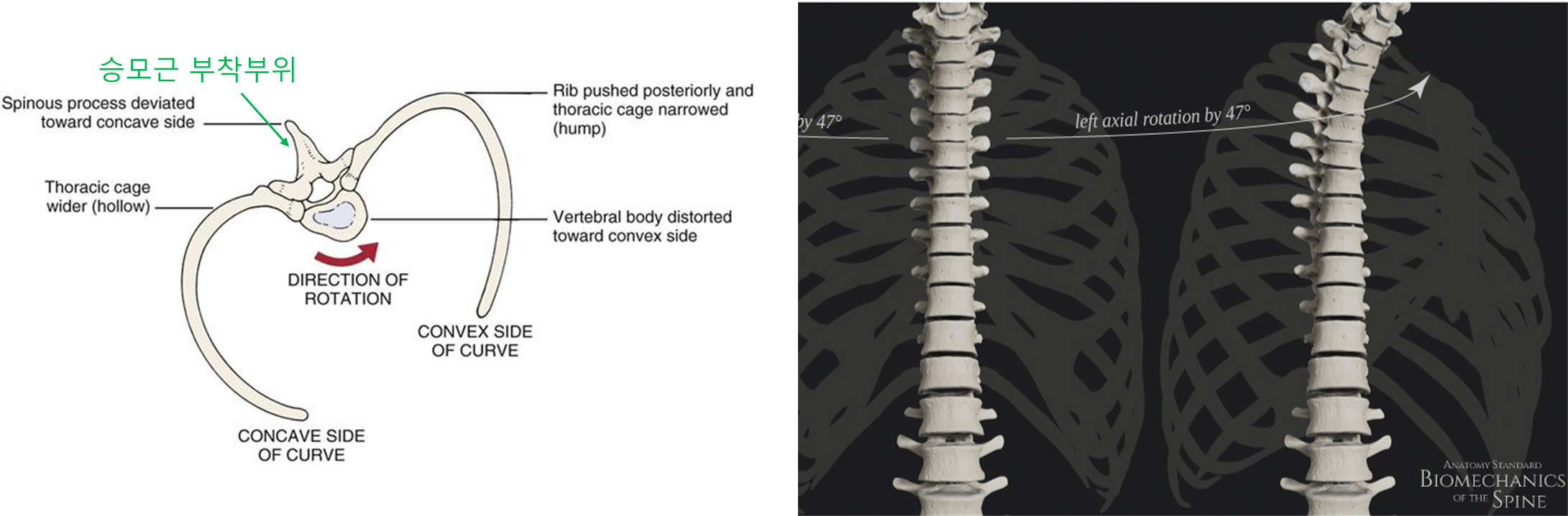등뼈를 회전시키는 근육은 세분화하면 더욱 많지만, 본 게시물에서는 주요 근육만 표기하였다.