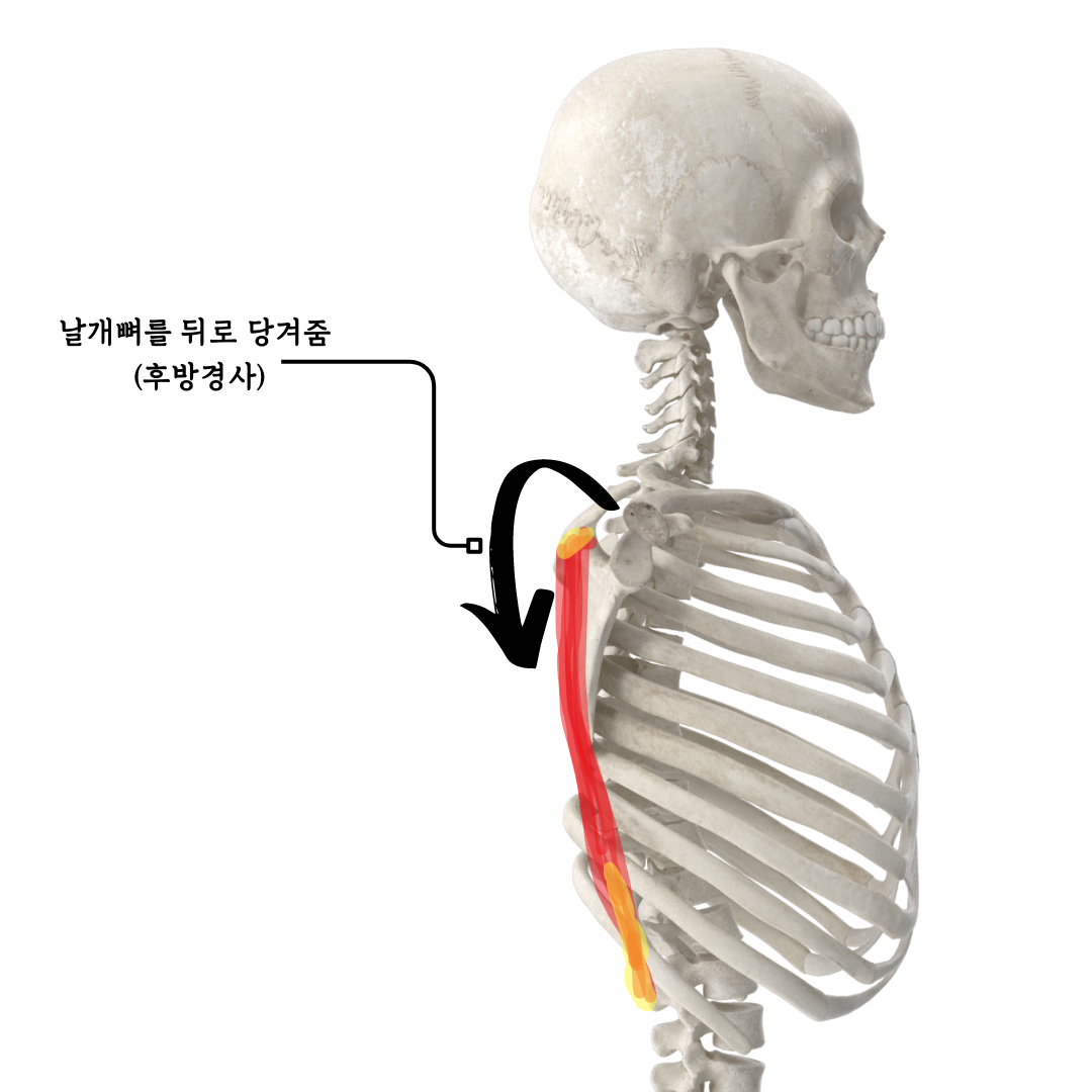 - 날개뼈가 상승하는 걸 억제한다.
