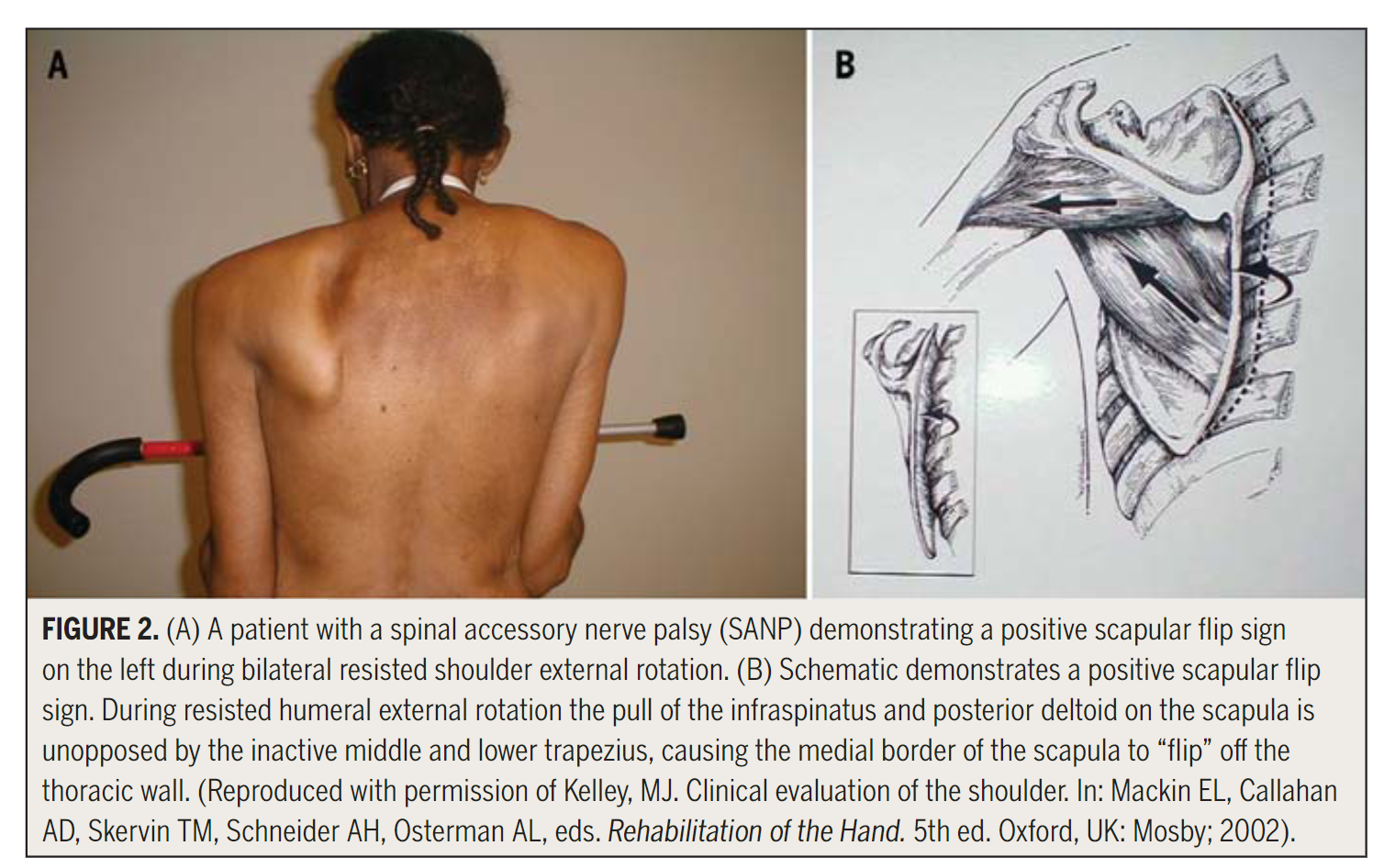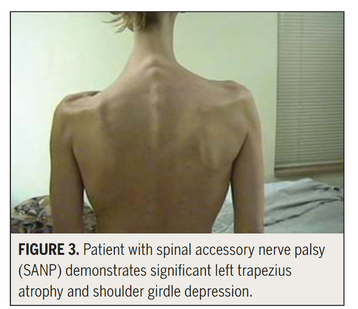 Kelley, M. J., Kane, T. E., & Leggin, B. G. (2008). Spinal accessory nerve palsy: associated signs and symptoms. journal of orthopaedic & sports physical therapy, 38(2), 78-86.