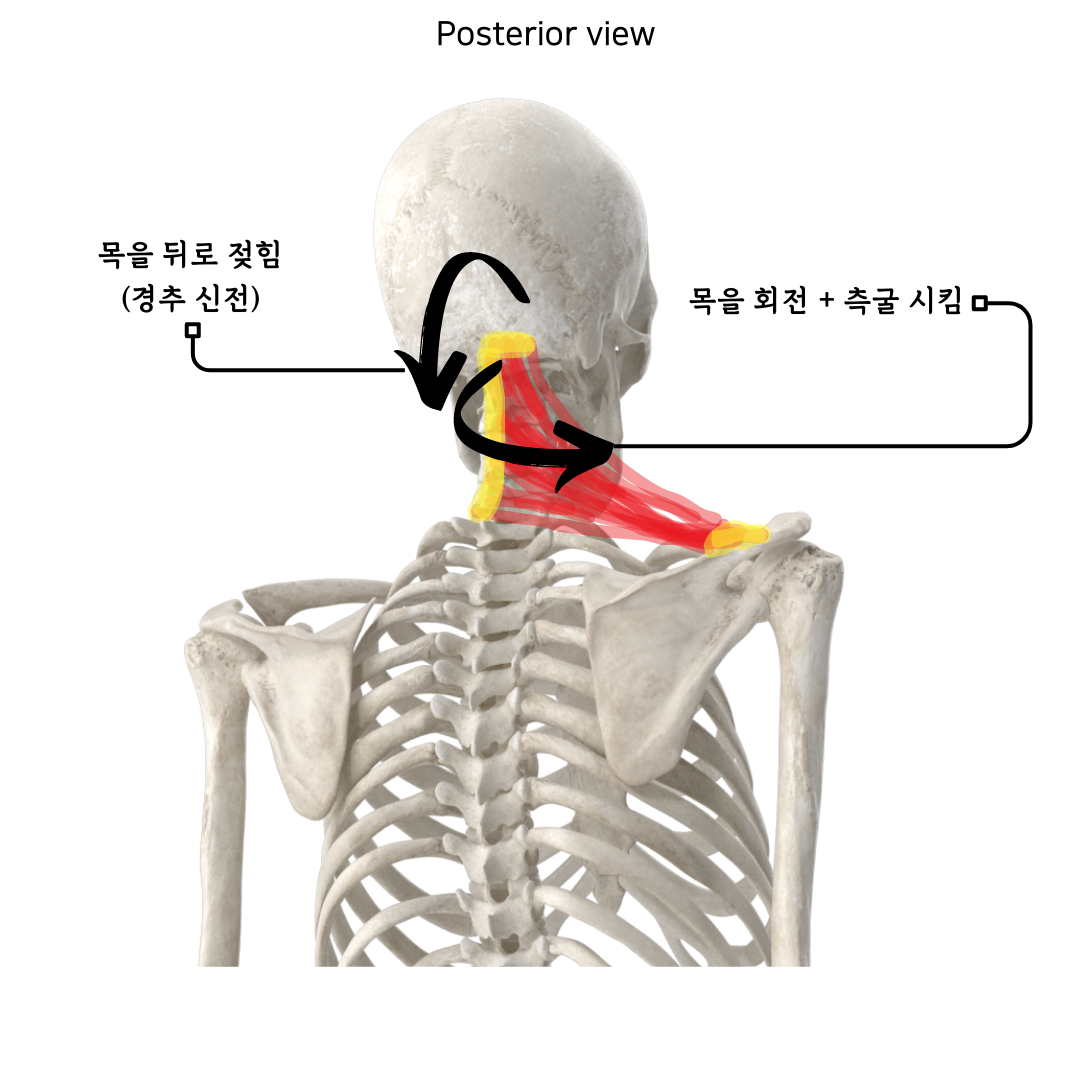실제로 승모근이 제 기능을 못하게 되는 경우, 아래 4가지 근육은 모두 보상적으로 수축할 수 있으며, 이러한 보상성 수축이 근육의 과부하로 이어져서 통증으로까지 나타나는 건 드문 일이 아니다.