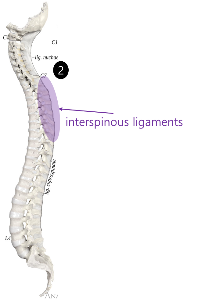 - T1~T5 interspinous ligaments (흉추 1~5번까지의 극간인대)